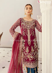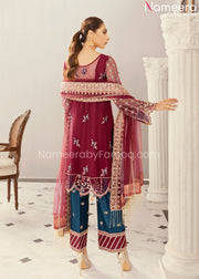 Embroidered Formal Kameez Trouser is a lavish attire in Net fabric beautifully adorned with beads, stones, pearls, silver work and embroidery creating a graceful as well as traditional attire for any festive occasion.